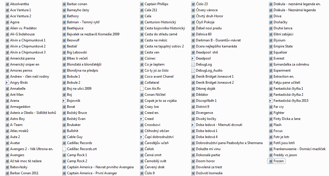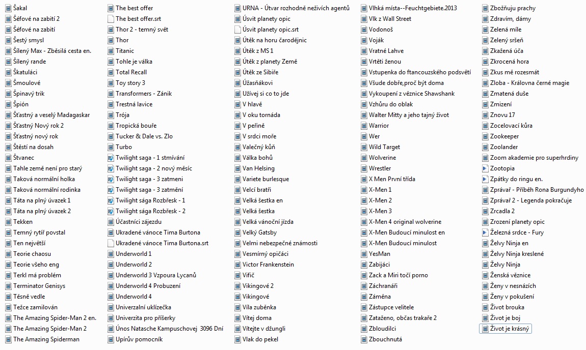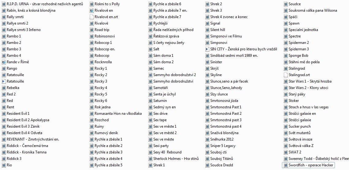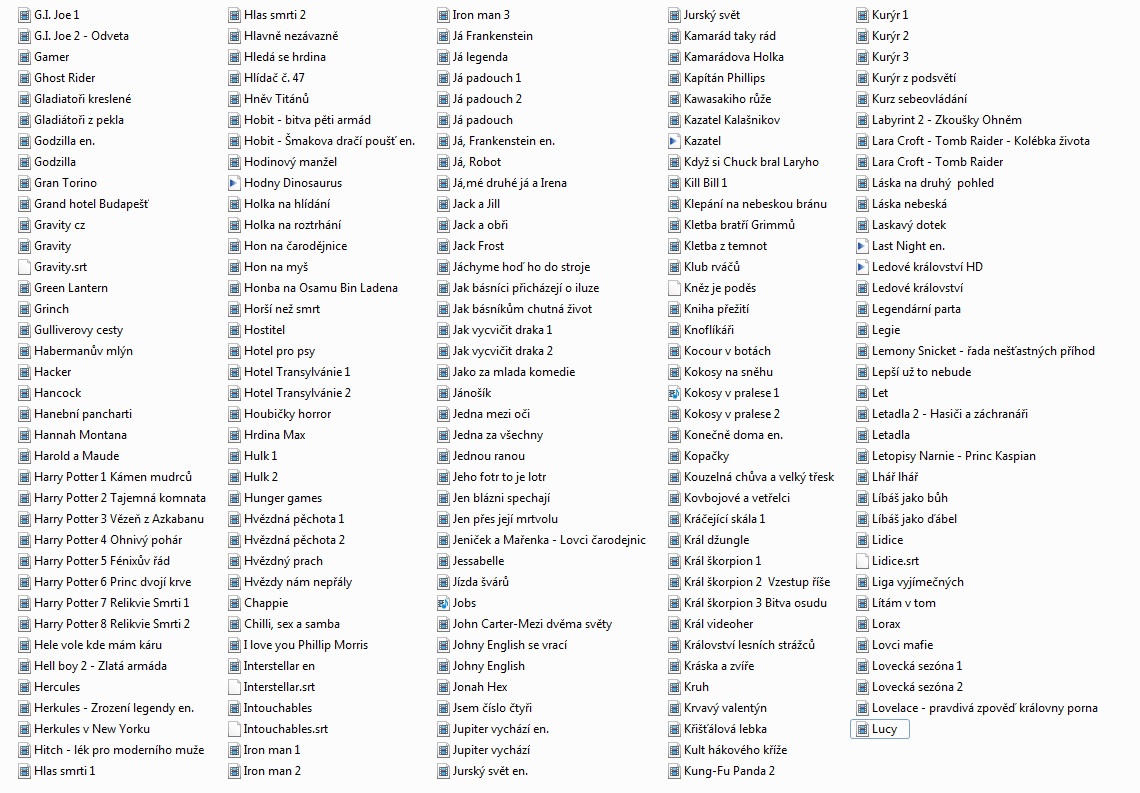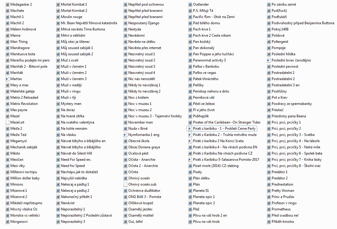007 / Casino Royale 007 / Dnes neumírej 007 / Jeden svět nestačí 007 / Zítřek nikdy neumírá 007 / Zlaté oko Pán prstenů / Společenstvo prstenů Pán prstenů / Dvě věže Pán prstenů / Návrat krále 12 opic / - 339 1612 Kronika smutných časů / - 327 20 ers - 222 2077 Vexille / - 486 30 případů majora Zemana / - 295 30 případů majora Zemana / - 389 3000 mil na útěku / 3000 Miles to Graceland - 33 5 x 2 / - 178 50x a stále poprvé / 50 First Dates - 47 7 vteřin / - 232 8 1/2 ženy / - 190 8 žen / - 141 Absolvent / - 158 Adaptace / - 155 Air America / - 391 Alexander / - 302 Alexandr Veliký / Alexander the Great - 70 Amélie z Montmartru / - 497 Americký prezident / - 306 Amores Perros / - 144 Assassins ? - 11 Asterix a překvapení pro Cézara - 28 Baba na zabití / Duplex - 21 Babí léto / - 379 Báječná léta pod psa / - 436 Báječní Bakerovi hoši / - 248 Báječní muži s klikou / - 287 Balada pro banditu / Provázek - 268 Bazén / Swimming Pool - Der Tod feiert mit - 51 Big Lebowski / - 210 Bílá vdova / - 380 Billy Madison / - 336 Bílý šejk / - 188 Black Jack / D. Lungdren - 282 Bobule / - 454 Boj o Excalibur / - 496 Bojiště Země / - 326 Bolero / - 234 Borsalino a spol. / A. Delon - 388 Bratříčku, kde jsi / - 368 Bridget Jonesová, S rozumem v koncích / - 236 Brutální Nikita / - 285 Candy / - 198 Carmen / - 166 Cartouche / Belmondo - 278 Casino / - 342 Casino / - 447 Casshern / - 476 Cesta draka / - 399 Cikáni jdou do nebe / - 243 Cliffhanger / Stallone - 256 Co ? - 328 Co jsem komu udělala / - 202 Co žere Gilberta Grapea / - 394 Collateral / Collateral - 60 Constantine - 67 Control / - 407 Cotton Club / - 450 Což takhle dát si špenát / - 341 Čas smyslnosti / - 183 Černá kniha / - 329 Černá kočka bílý kocour / - 372 Černá magie / - 270 Černá roucha / - 209 Černý a bílý / - 237 Černý korzár / - 431 Čokoládoví čmuchalové / - 420 Čti mi ze rtů / - 154 Čtyři pokoje / - 153 Čtyři z tanku a pes / - 465 Čtyři z tanku a pes / - 466 Ďáblíci / - 323 Ďáblův advokát - 12 Dannyho parťáci - 14 Dar od boha / - 349 Dárek z lásky / - 308 Delikatesy / - 185 Den poté / The Day After Tomorrow - 23 Deník Bridget Jonesové / - 257 Deník princezny 2 - . Diamantoví psi / - 421 Díky za každé nové ráno / - 296 Divoká řeka / - 409 Divoké včely / - 401 Doblba / - 297 Dobrodružství velké jako život sám / - 220 Domino / G. Hackman - 451 Dračí srdce / Sean Connery... - 106 Druhá tráva / USA výběr - 97 D-tox / S. Stallone - 358 Důkaz / - 147 Duna / - 186 Dva machři mezi nebem a peklem / - 459 Dva nosáči tankují super / - 93 Dva výtečníci / Spencer, Hill - 75 El Matador / - 449 Elephant Tales / - 124 Eros / - 132 Experti / - 366 Faktótum / - 134 Fantom Morrisvillu / - 426 Fantom Opery - 84 Fantomas / - 492 Fantomas se zlobí / - 491 Femme Fatale / - 316 Forman / Co tě nezabije - 225 Formule! / Driven - 6 Frances / - 175 Frída / - 130 Garfield ve filmu / Garfield: The Movie - 41 Gauneři / - 194 Ghost Dog / Cesta samuraje - 138 Ginder & Fred / - 469 Girls - 63 Gladiátor / Gladiator - 49 Gladiator Cop / - 347 Gomez & Tavarés / - 17 Good Bye Lenin / - 385 Gosfordpark / - 272 Grand hotel / - 304 Grbavica / - 461 Gynekologie 2 / - 281 Hannibal / - 242 Herbie / Herbie Fully Loaded - 72 Hezké chvilky bez záruky / - 403 Highlander / - 322 HIN Hot Import Nights - 8 Hlas Moře / - 197 Hledám Amy / - 169 Hledání země nezemě / - 151 Hodiny / - 139 Holky to chtěj taky / Mädchen, Mädchen - 35 Horem pádem / - 264 Hotel Rwanda / - 137 Hráči / Shade - 55 Hračka / - 251 Hranice ovládání / - 156 Hrdina / - 413 Hříšný tanec - 16 Hříšný tanec 2 / - 289 Hudson Hawk / B. Willis - 405 Hvězdná brána / Stargate SG-1 - 96 Hvězdná brána / - 310 Chaplin / - 434 Chicago / - 402 Chřestýši útočí / - 422 Inland Empire / - 146 Insomie / - 464 Irina Palm / - 171 Jáchyme, hoď ho do stroje / - 412 Jak básníci neztrácejí naději / - 415 Jak na věc / - 200 Jak svět přichází o básníky / - 235 Jak třeba zabít Sekala / - 432 Jakubův žebřík / - 172 Jára Cimrman, Ležící spící / - 311 Jaro, léto, podzim, zima… a jaro / - 182 Jedna ruka netleská - 40 Jedné noci v jednom městě / - 428 Jezero hrůzy / - 343 Jízda / Buty - 425 Kafe a cigára / - 396 Kachní sezóna / - 333 Kat / The Punisher - 45 Kdo najde přítele, najde poklad / Spencer, Hill - 71 Kika / - 208 Klepání na nebeskou bránu / - 128 Kletba bratří Grimů / - 430 Klik - život na dálkové ovládání / Click - 79 Kluci to chtěj taky - 36 Kočka / - 160 Kód Navajo / Windtalkers - 48 Kód pro vraždu / - 267 Kolja / - 301 kolo - 18 Kontraband / Van Dame - 479 Konvoj / - 404 Kostka / - 424 Král Kalifornie / - 354 Král škorpion / - 244 Král zlodějů / König der Diebe - 58 Královna / - 161 Královský slib - 5 Království ohně / Reign of Fire - 57 Krásná pokojská / Maid in Manhattan - 37 Krev a mlíko / - 313 Krev jako čokoláda / - 107 Kriminál / S. Stallone - 381 Kristian / O. Nový - 263 Kruh / The Ring - 50 Křižáci / - 286 Kukuřičné děti / Zjevení - 114 Kull dobyvatel / - 418 Kult hákového kříže / - 211 Kurs sebeovládání / Anger Management - 38 Lara Croft / Tomb Raider - 3 Láska z pasáže / - 338 Ledová bouře / - 265 Legionář / Van Damme - 429 Léto s liškou / - 115 Lev v zimě / - 173 Liga gentlemanů / The League of Gentlemen - 25 Lisabonský příběh / - 164 Lolita / - 495 Louskáček a myší král - 117 Lživý svědek / - 362 Magnolia / - 212 Maléry pana účetního / - 392 Maléry pana účetního / - 468 Malý unavený Joe / - 458 Marvinův pokoj / - 440 Matador / - 203 Matrix / - 1 Matrix Reloaded - 13 Matrix Revolutions - 46 Mé srdce pohřběte u Wounded Knee / - 99 Medvídek / - 293 Medvídek Rupert / Trampoty a radovánky - 73 Město bohů / - 159 Město ztracených dětí / - 145 Milenci ze severního pólu / - 192 Miliónová Ester Ládov